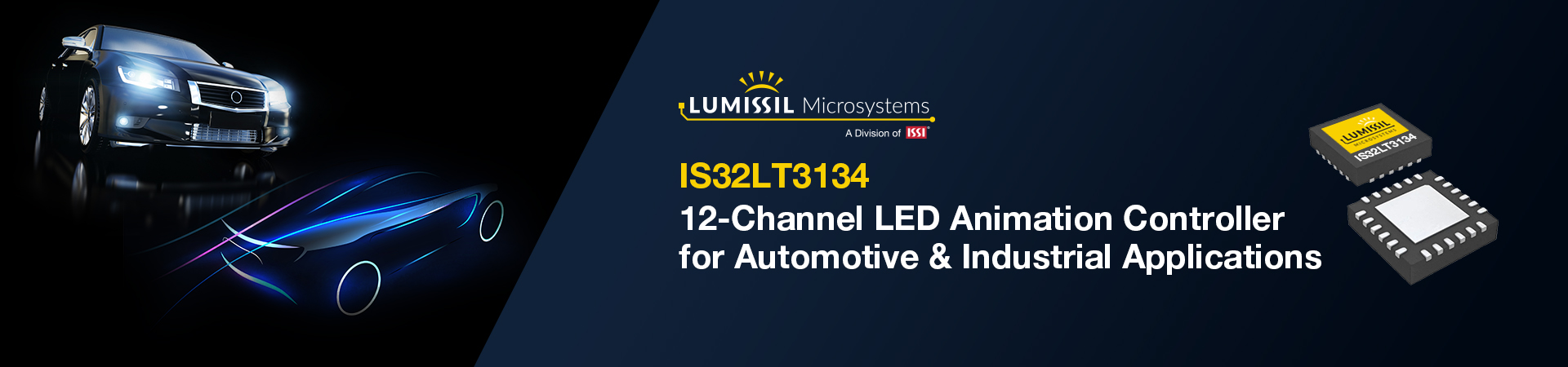 IS32LT3134 stores multiple animation patterns for playback to drive animated Tail, DRL, Emergency and Welcome lights for next generation Auto Lighting.
