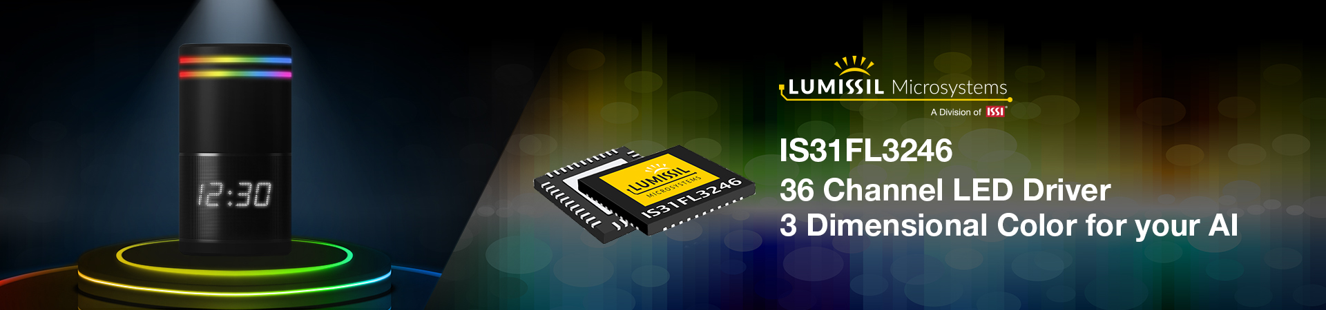 “The IS31FL3246 is not only backward compatible with our popular IS31FL3236A it also incorporates leading edge technology,” said Ven Shan, Vice President of Lumissil. “Its 3-dimensional dimming is a first in the industry giving software developers unprecedented control over RGB LED color mixing.”