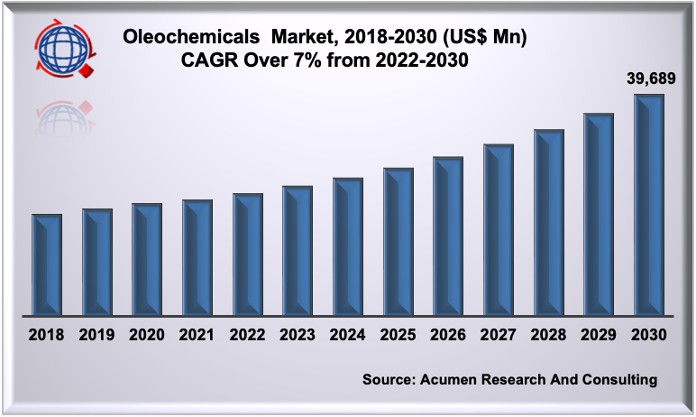 Acumen Research and Consulting recently published report titled “Oleochemicals Market Size, Share, Analysis Report And Region Forecast, 2022 - 2030”