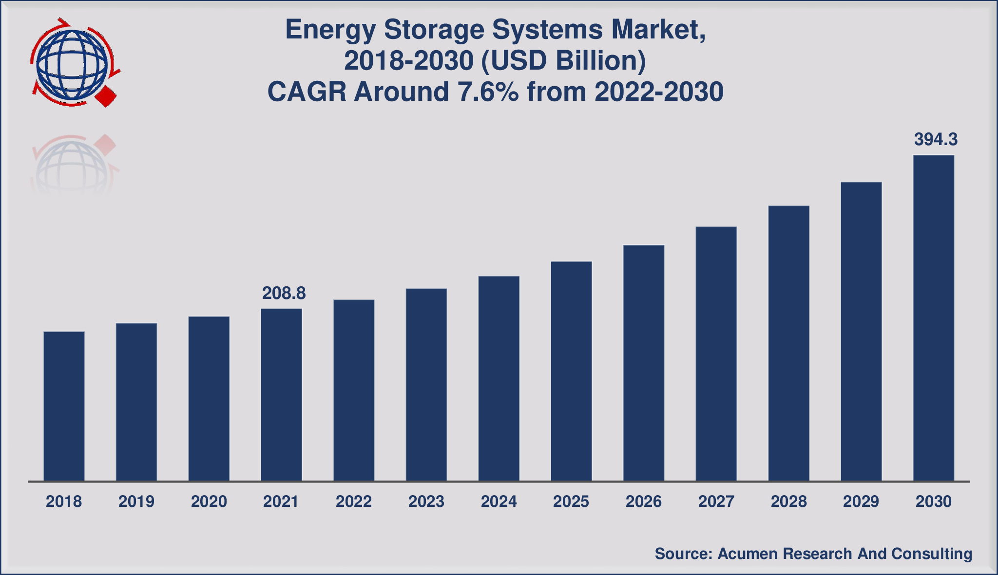 Acumen Research and Consulting recently published report titled “Energy Storage Systems Market and Region Forecast, 2022 - 2030”
