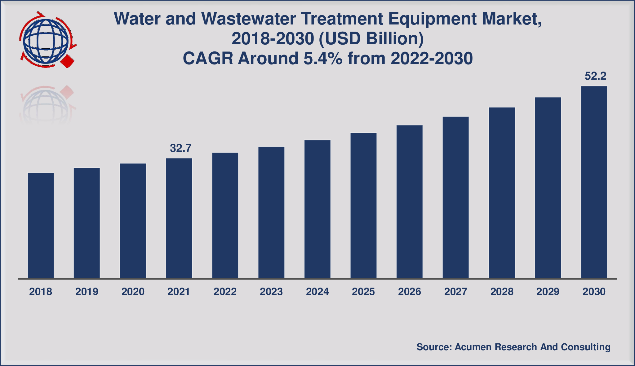 Acumen Research and Consulting recently published report titled “Water and Wastewater Treatment Equipment Market and Region Forecast, 2022 - 2030”